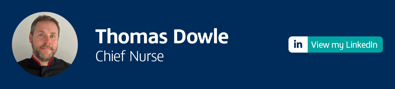 • In a previous role, Thomas’s team working in the community in Camden were shortlisted for a Nursing Times Award